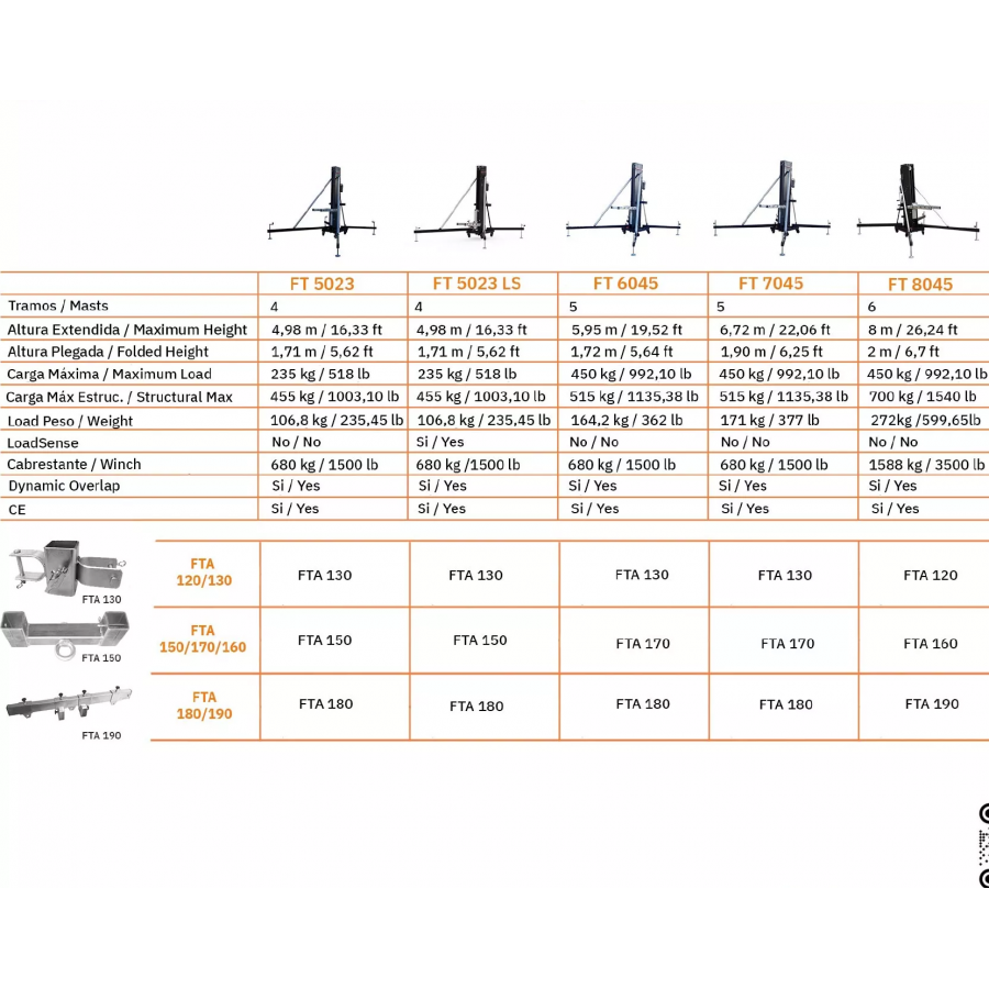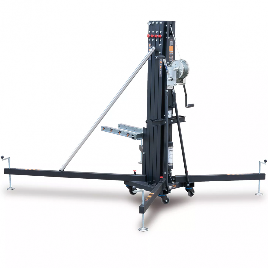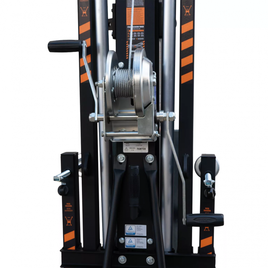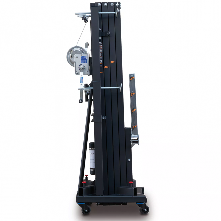 Čelní zvedací věž s maximální výškou 4.98 m. V normálním režimu dokáže zvednout až 235 kg a ve svém konstrukčním provedení 455 kg. Systém dynamického překrývání rovnoměrně rozkládá namáhání na všech hliníkových profilech, čímž zlepšuje jejich odolnost a snižuje průhyb. Černé provedení.