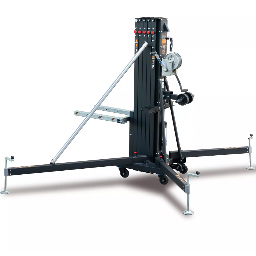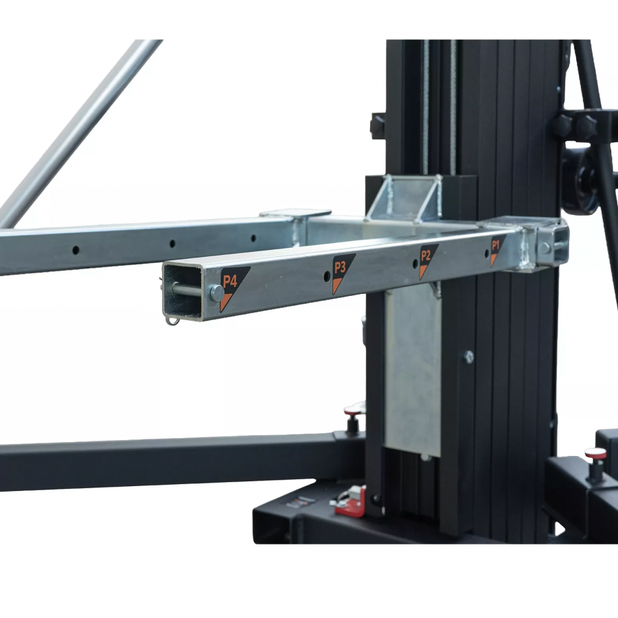 V normálním režimu dokáže zvednout až 450 kg a ve svém konstrukčním provedení 515 kg. Systém dynamického překrývání rovnoměrně rozkládá namáhání na všech hliníkových profilech, čímž zlepšuje jejich odolnost a snižuje průhyb. Černé provedení.