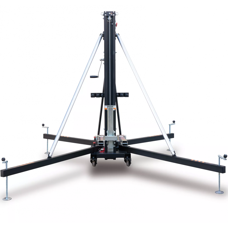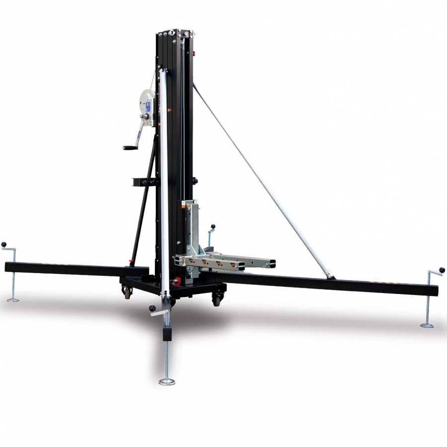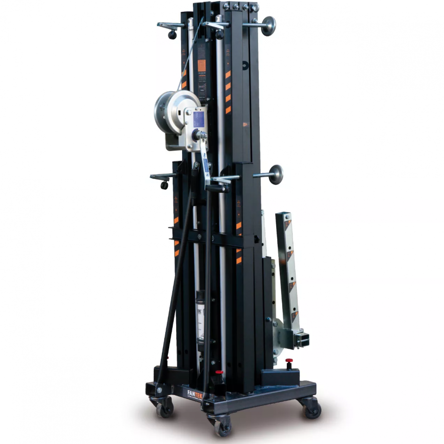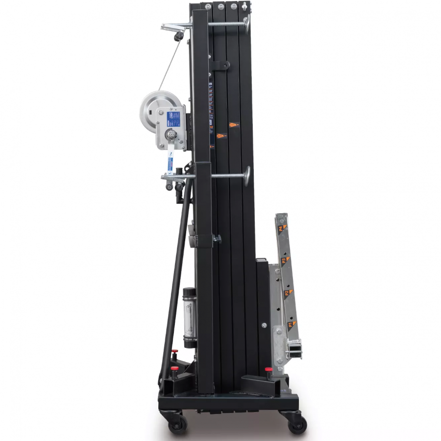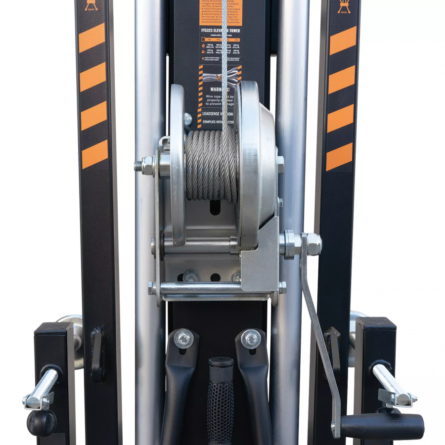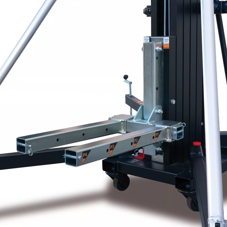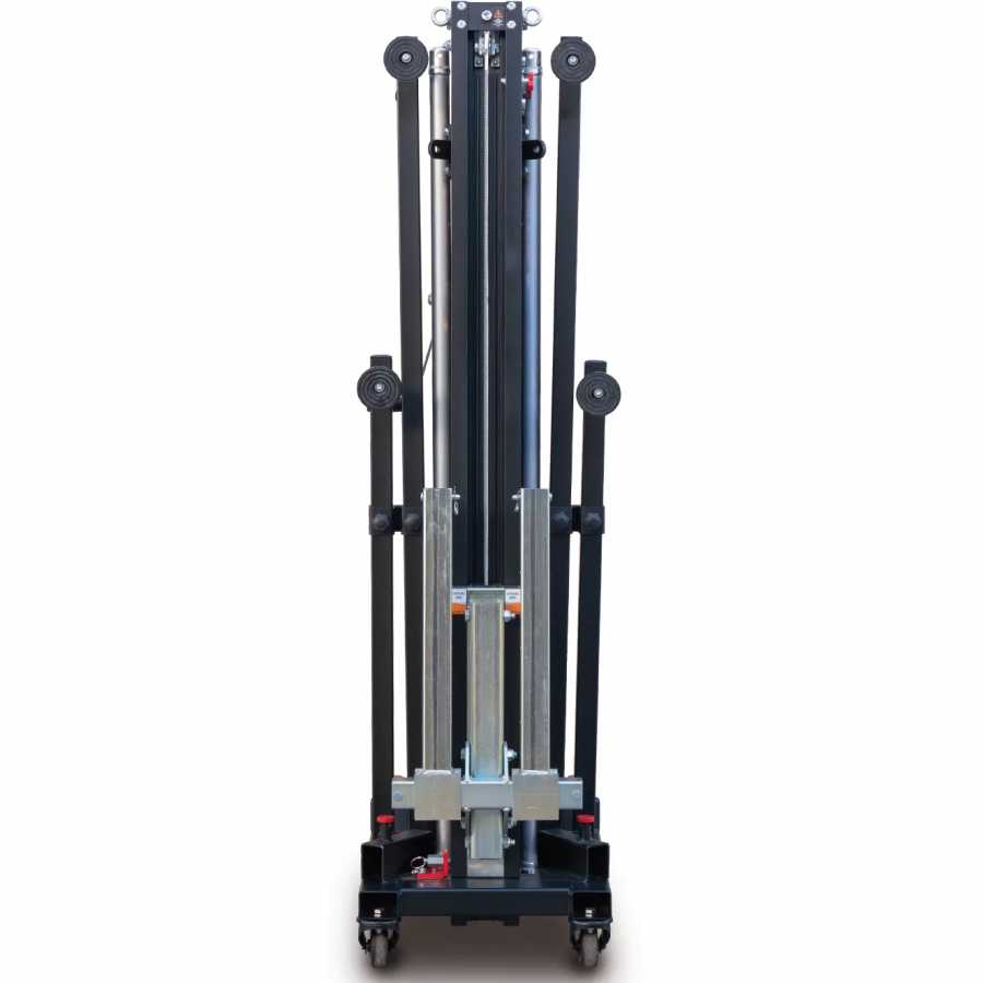 Front load lifting tower with a maximum height of 4.98m. Able to lift up to 235Kg in its normal mode and 455Kg in its structural model. Its Dynamic Overlap system evens the stresses across all the aluminum profiles, improving their resistance and reducing deflexion.